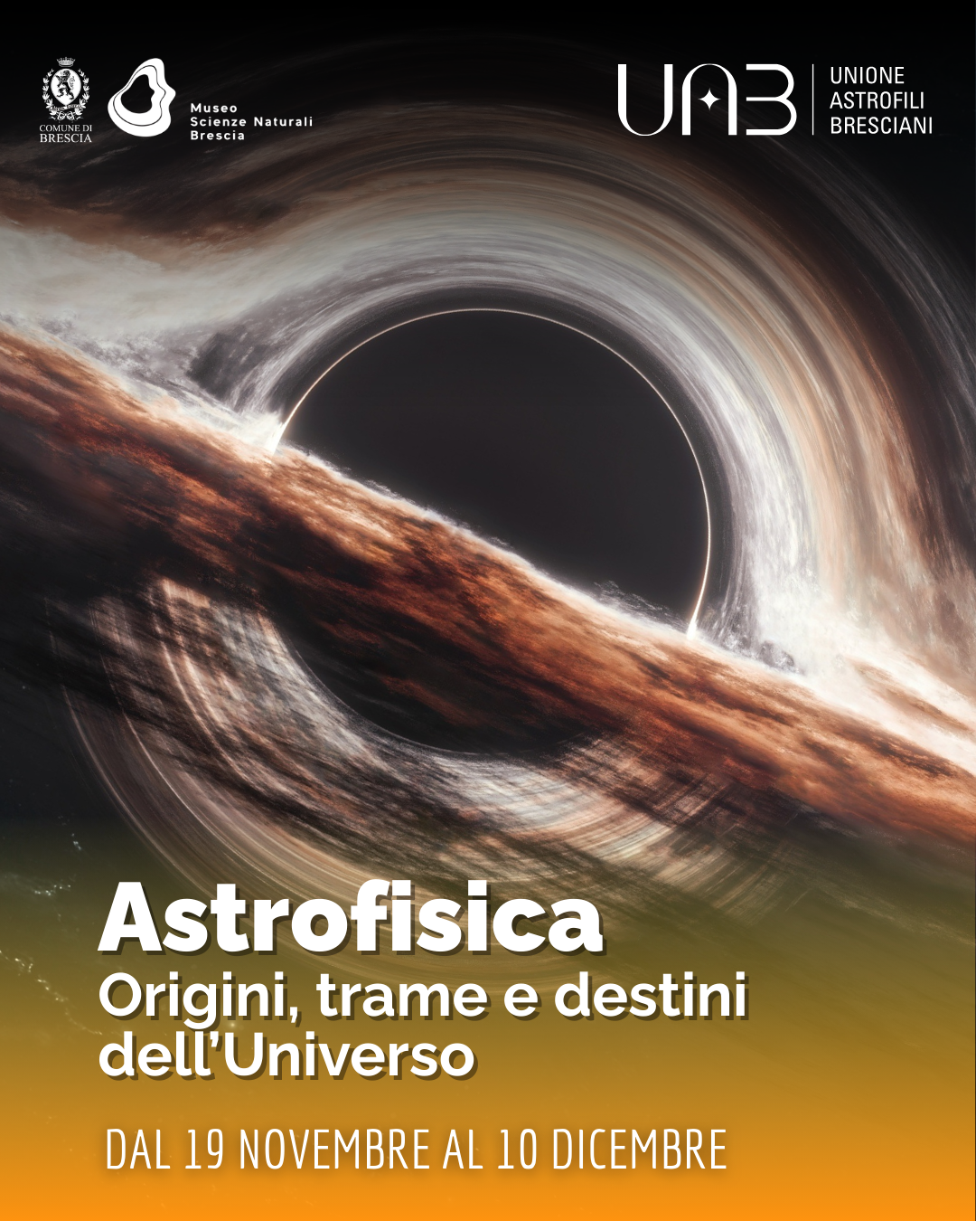 “Astrofisica: origini, trame e destini dell’Universo” è un ciclo di 4 incontri divulgativi, in collaborazione col Museo di Scienze Naturali di Brescia, su alcuni temi attuali dell’astrofisica e sugli interrogativi ancora aperti nel mondo della ricerca scientifica.